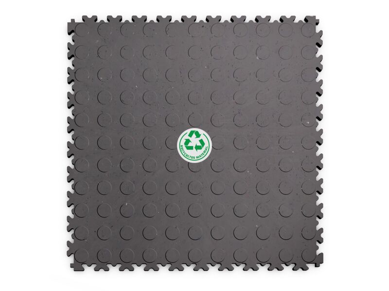 Fortelock® Vinylfliese 2040 (Noppen) "ECO" 510 x 510 mm (Preis pro Stk.) Hohe Belastbarkeit für Industrie- Anwendungen (Werkstatt, Lagerhallen) Farbe: Graphit Besteht aus recyceltem Material! Oberfläche mit Materialeinschlüssen (keine deckende Farbgleichheit