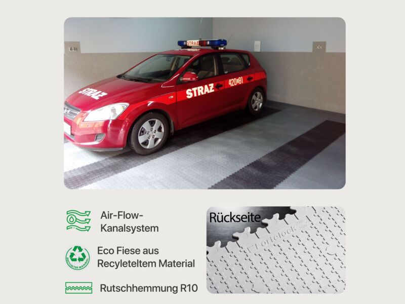 Die Fortelock Easyclick Industry Bodenfliese aus PVC eignet sich perfekt als Bodenbelag für Industrie- und Lagerhallen, Garagen oder Werkstätten. Benötigen Sie widerstandsfähige Fliesen mit einer guten Rutschhemmung und optimaler Belastbarkeit, dann ist die Fortelock Easyclick Industry Fliese die richtige Wahl. Die Bodenfliese wird mithilfe des Stecksystems schwimmend verlegt und ist sofort einsatzbereit. Die einzigartige Fortelock „AirFlow“ Technologie sorgt für eine gute Belüftung unter dem Fliesenboden, um der Bildung von Schimmel vorzubeugen.