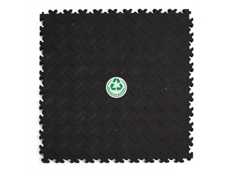 Fortelock® Vinylfliese 2010 (Diamant) "ECO" 510 x 510 mm (Preis pro Stk.) Hohe Belastbarkeit für Industrie- Anwendungen (Werkstatt, Lagerhallen) Farbe: Schwarz Besteht aus recyceltem Material! Oberfläche mit Materialeinschlüssen (keine deckende Farbgleichheit