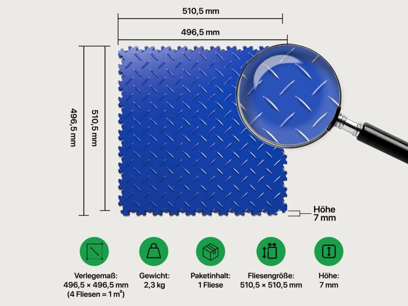 Fortelock® Vinylfliese 2010 (Diamant) 510 x 510 mm (Preis pro Stk.) Hohe Belastbarkeit für Industrie- Anwendungen (Werkstatt, Lagerhallen) Farbe: Blau