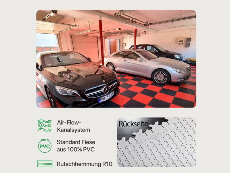 Die Fortelock Easyclick Industry Bodenfliese aus PVC eignet sich perfekt als Bodenbelag für Industrie- und Lagerhallen, Garagen oder Werkstätten. Benötigen Sie widerstandsfähige Fliesen mit einer guten Rutschhemmung und optimaler Belastbarkeit, dann ist die Fortelock Easyclick Industry Fliese die richtige Wahl. Die Bodenfliese wird mithilfe des Stecksystems schwimmend verlegt und ist sofort einsatzbereit. Die einzigartige Fortelock „AirFlow“ Technologie sorgt für eine gute Belüftung unter dem Fliesenboden, um der Bildung von Schimmel vorzubeugen.