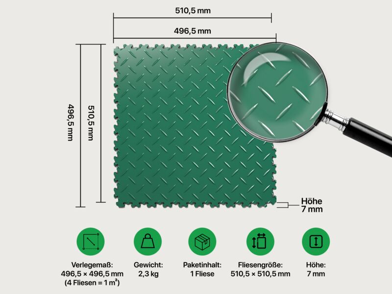 Fortelock® Vinylfliese 2010 (Diamant) 510 x 510 mm (Preis pro Stk.) Hohe Belastbarkeit für Industrie- Anwendungen (Werkstatt, Lagerhallen) Farbe: Grün