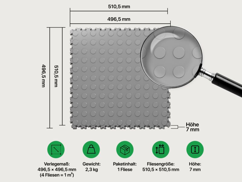 Fliesengröße: 510 x 510 mm