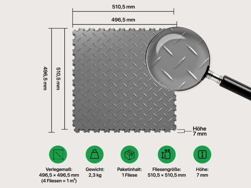 Fliesengröße: 510 x 510 mm