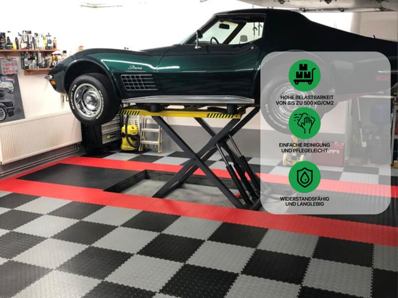 Bei der Farbwahl der Fliesen sollten sich Garagen- und Werkstattbesitzer allerdings darüber im Klaren sein, dass sich bei bestimmten Reifen und einigen Rädern mit der Zeit braune Flecken auf den Fliesen bilden können. Diese Flecken sind die Folge einer chemischen Reaktion zwischen dem in Gummi verwendeten Antioxidans und den in Vinyl verwendeten Plastifikatoren. Fliesen in Farbtönen wie Graphit oder Schwarz sind dementsprechend weniger anfällig.