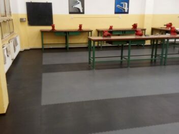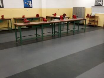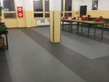 Auch in der Berufsschule für Verkehr und technische Handwerke wurde beschlossen das alte abgenutzte Linoleum durch PVC Fortelock Fliesen zu ersetzen. Einfache und schnelle Verlegung, Schleuderschutzoberfläche, Beschädigungsbeständigkeit und einfacher Austausch einzelner Teile auch langfristig. Das waren die Hauptgründe, warum in den Werkstätten die PVC Fliesen verlegt wurden.