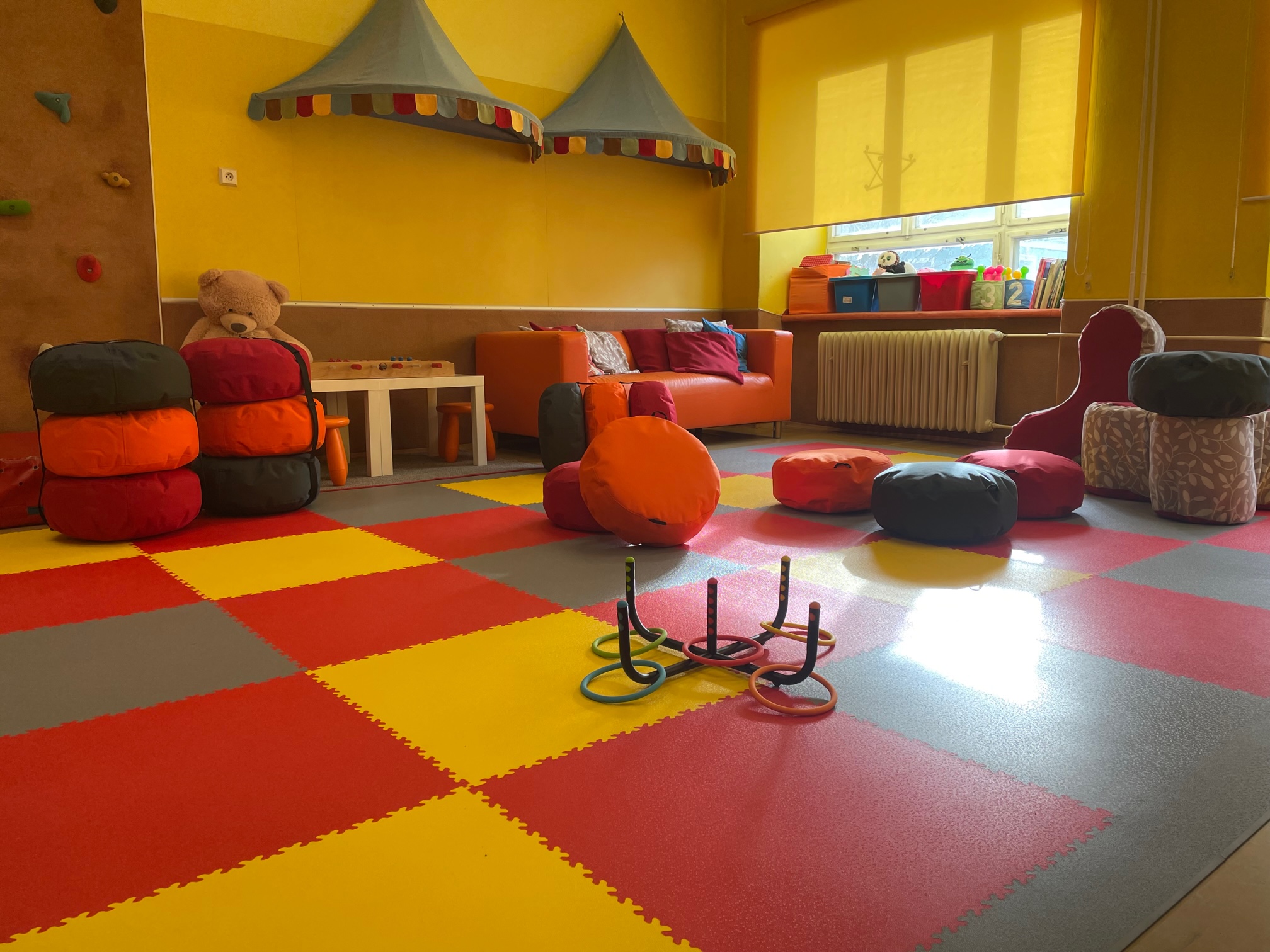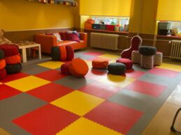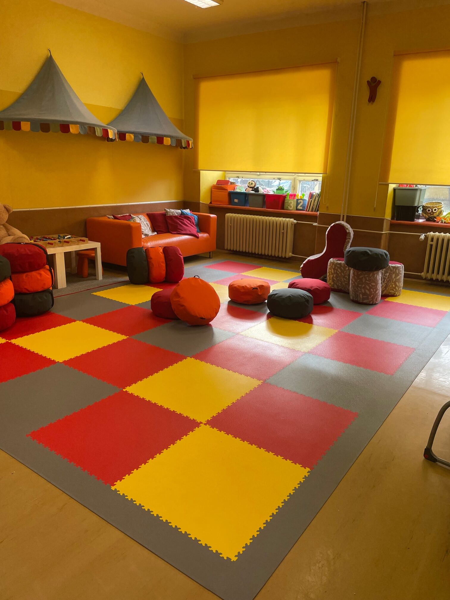 Durch die Kombination der Farben Grey, Rosso Red und Yellow wurde der Raum optisch belebt. Die Farben wurden gezielt auf die restliche Einrichtung abgestimmt, um ein harmonisches Gesamtbild zu schaffen. Ein überraschender Nebeneffekt: Das intuitive Klicksystem der Fliesen weckte den Spieltrieb der Kinder. Da sich die Fliesen bei Bedarf leicht aufnehmen und neu zusammensetzen lassen, bietet der Boden sogar Potenzial für kreative Gestaltungsprojekte innerhalb der Gruppe.