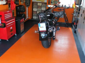 DIY-Vorteil: Dank des präzisen Klicksystems konnte der neue PVC-Bodenbelag in der Garage ohne handwerkliche Hilfe verlegt werden. Die Fliesen sind sofort befahrbar, was die Ausfallzeit auf ein Minimum reduziert.