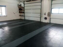 Die Wahl fiel auf die Fortelock Eco Serie in den Farben Black und Grey. Diese Fliesen bestehen aus hochwertigem Recyclingmaterial und bieten die identische PVC-Fliesen Belastung wie die Standard-Industry-Serie. Das verdeckte Klicksystem sorgt für eine robuste Oberfläche, die mechanischen Stößen durch herabfallendes Werkzeug problemlos standhält.