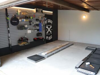Vielseitigkeit: Da der PVC-Bodenbelag in der Garage staubbindend und fußwarm ist, eignet sich die Fläche nun ebenso als Hobby-Werkstatt oder Fitnessraum.