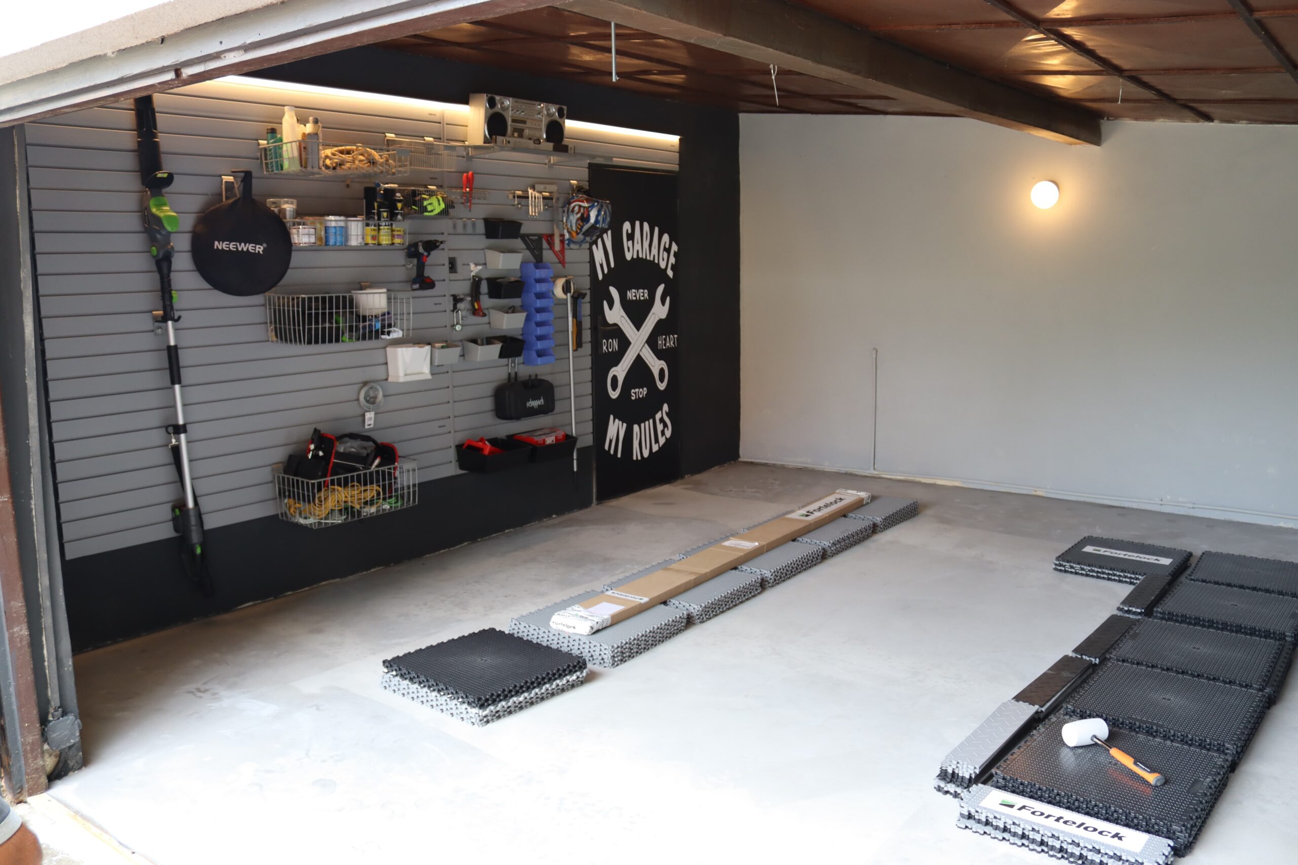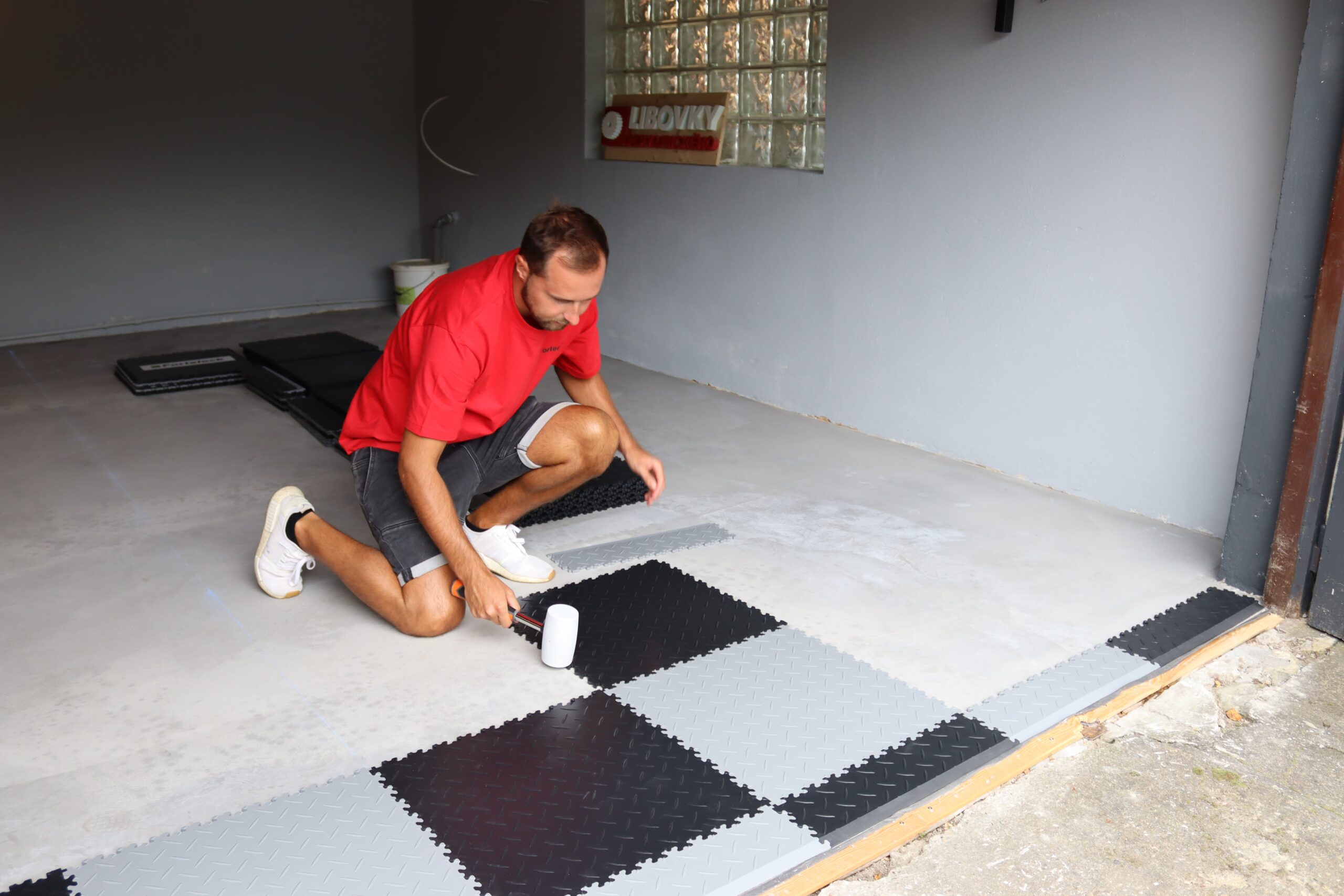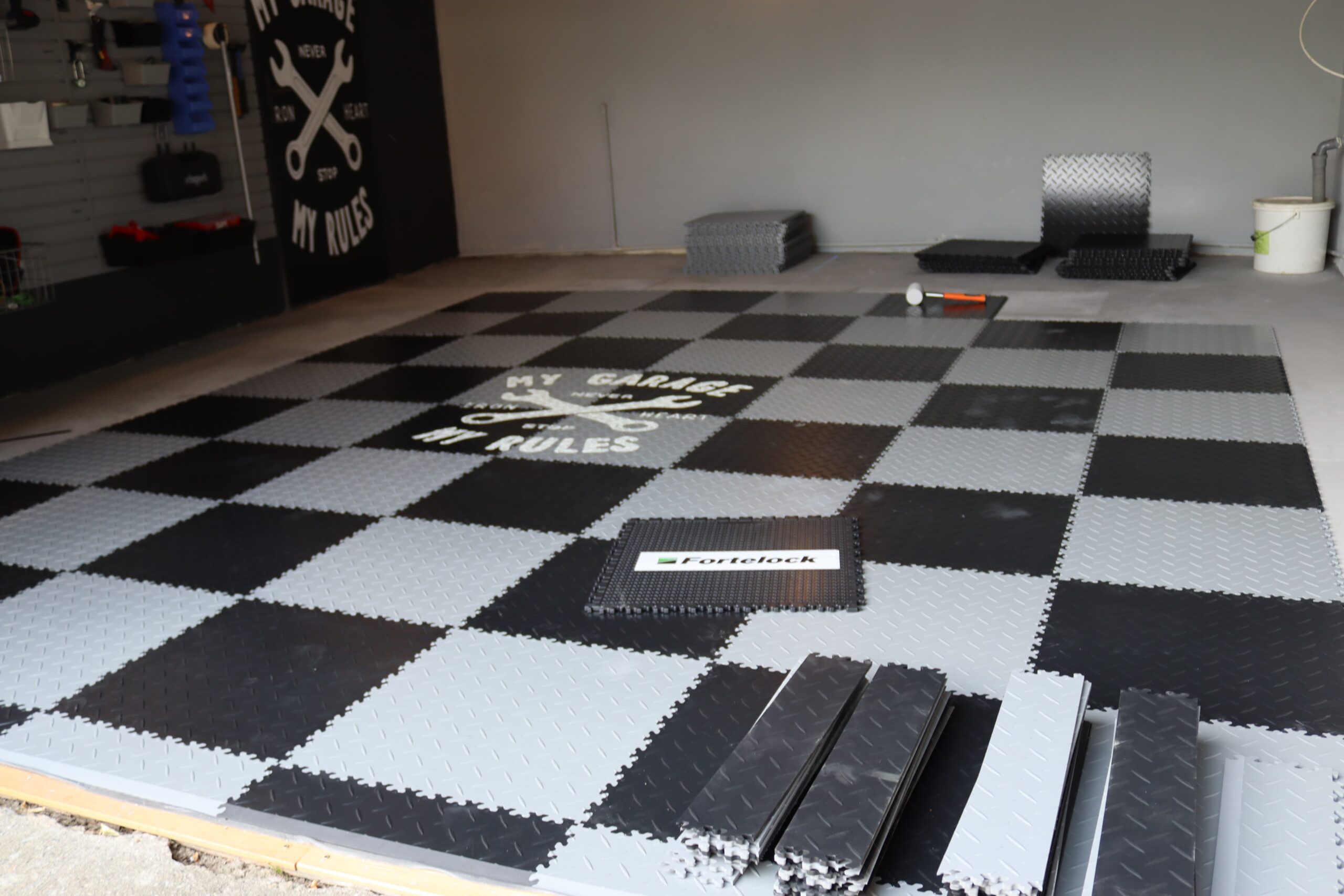 Ein privates Garagenprojekt in Tschechien zeigt eindrucksvoll, dass die Funktionalität einer Werkstatt und ein hoher ästhetischer Anspruch kein Widerspruch sein müssen. Auf einer Fläche von 25 m² suchte der Kunde nach einer Lösung, die nicht nur der täglichen PVC-Fliesen Belastung durch Fahrzeuge standhält, sondern sich auch nahtlos in das moderne Farbkonzept des Hauses integriert. Die Wahl fiel auf ein klassisches Schachbrettmuster in Grau und Schwarz der Serie Fortelock Industry.