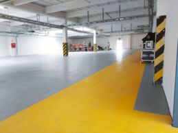 Die Wahl fiel auf die Fortelock Easyclick Industry Serie im funktionalen Skin-Design. Die Kombination aus Grey (Grau) und leuchtendem Yellow (Gelb) wurde genutzt, um Fahrspuren für Gabelstapler und Gehwege für Mitarbeiter unmissverständlich voneinander zu trennen.