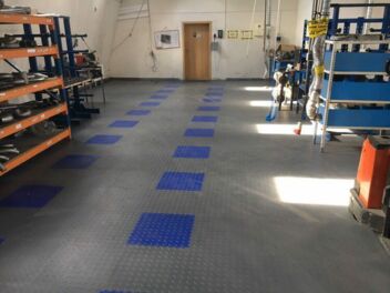 Die PVC-Fliesen Belastung der Industry-Reihe ist ideal für die Stahlblechverarbeitung geeignet, da das Material zäh-elastisch reagiert und somit das Risiko von Rissen im Untergrund bei herabfallenden Werkstücken minimiert. Die geschlossene Oberfläche verhindert zudem das Eindringen von Hydraulikölen. Alle Infos zum Werkstatt Boden und zur chemischen Beständigkeit finden Sie in unserem technischen Fachbereich.