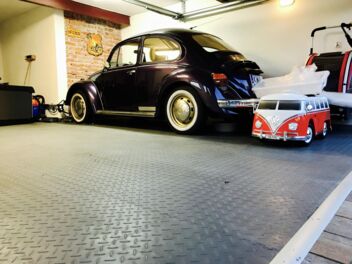 Schauen Sie sich den neuen Fußboden in der Garage unseres polnischen Kunden an. Auf den ursprünglichen Betonboden, bei dem es Probleme mit der Staubbildung gab, wurden graue Fortelock-Fliesen verlegt. Und warum entschied sich der Kunde ausgerechnet für diese Fliesen? Wie er uns selbst sagte, wollte er etwas sehr widerstandsfähiges, jedoch gemütliches.