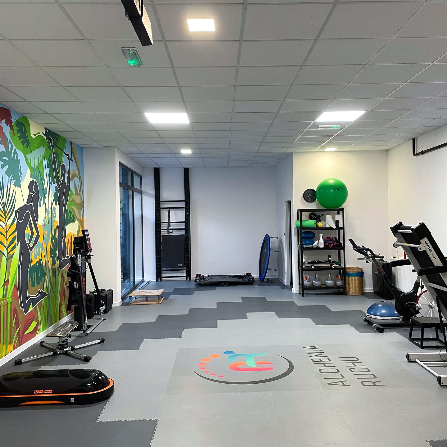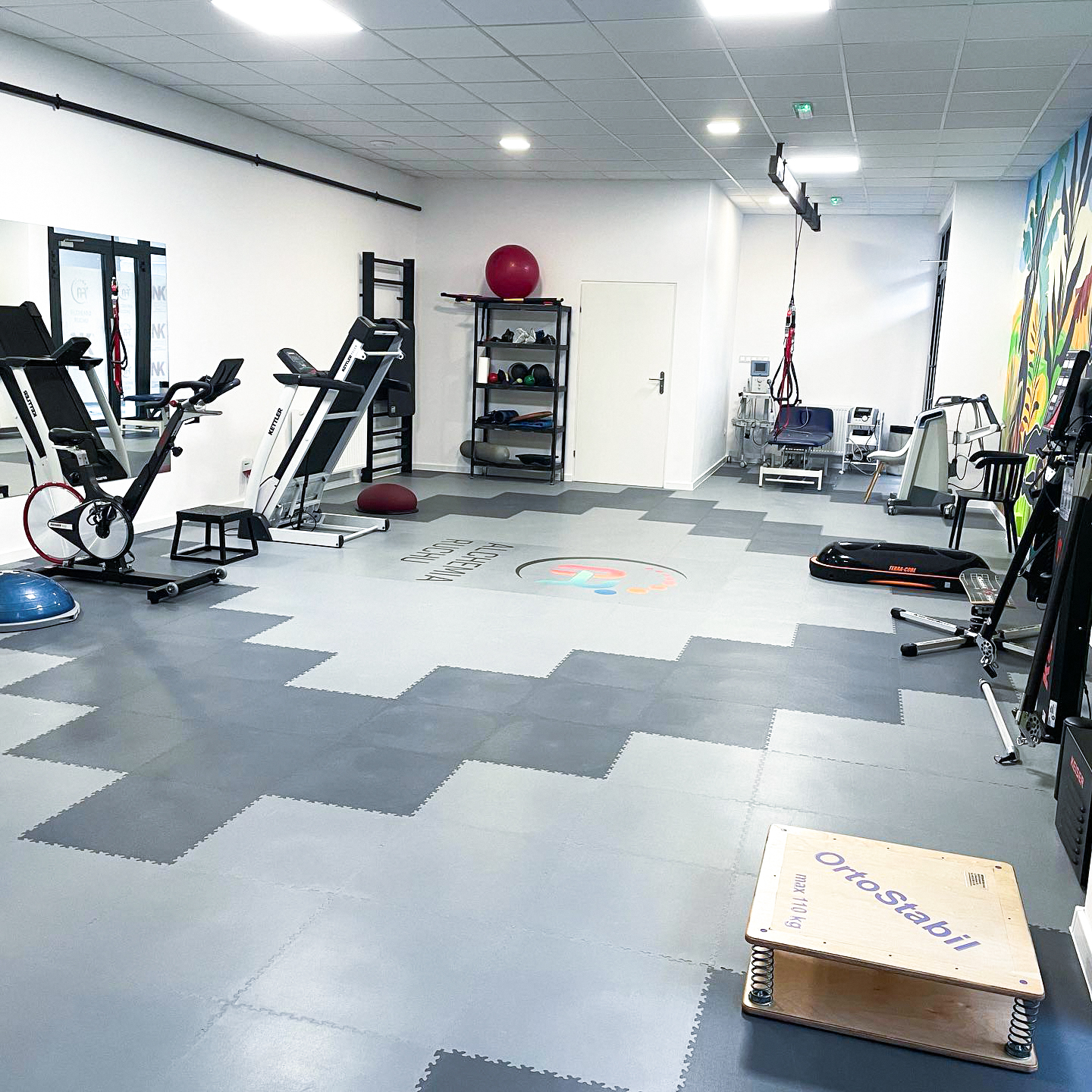Patienten führen während der Rehabilitation oft Übungen im Stehen oder direkt auf dem Boden aus. Ein harter, kalter Untergrund wirkt hier kontraproduktiv und belastet die Gelenke. Um den Werkstattboden sanieren oder – wie in diesem Fall – einen Therapieraum medizinisch gerecht ausstatten zu können, wurde ein System gesucht, das rutschhemmend ist, Schall schluckt und eine angenehme Fußwärme speichert.