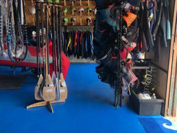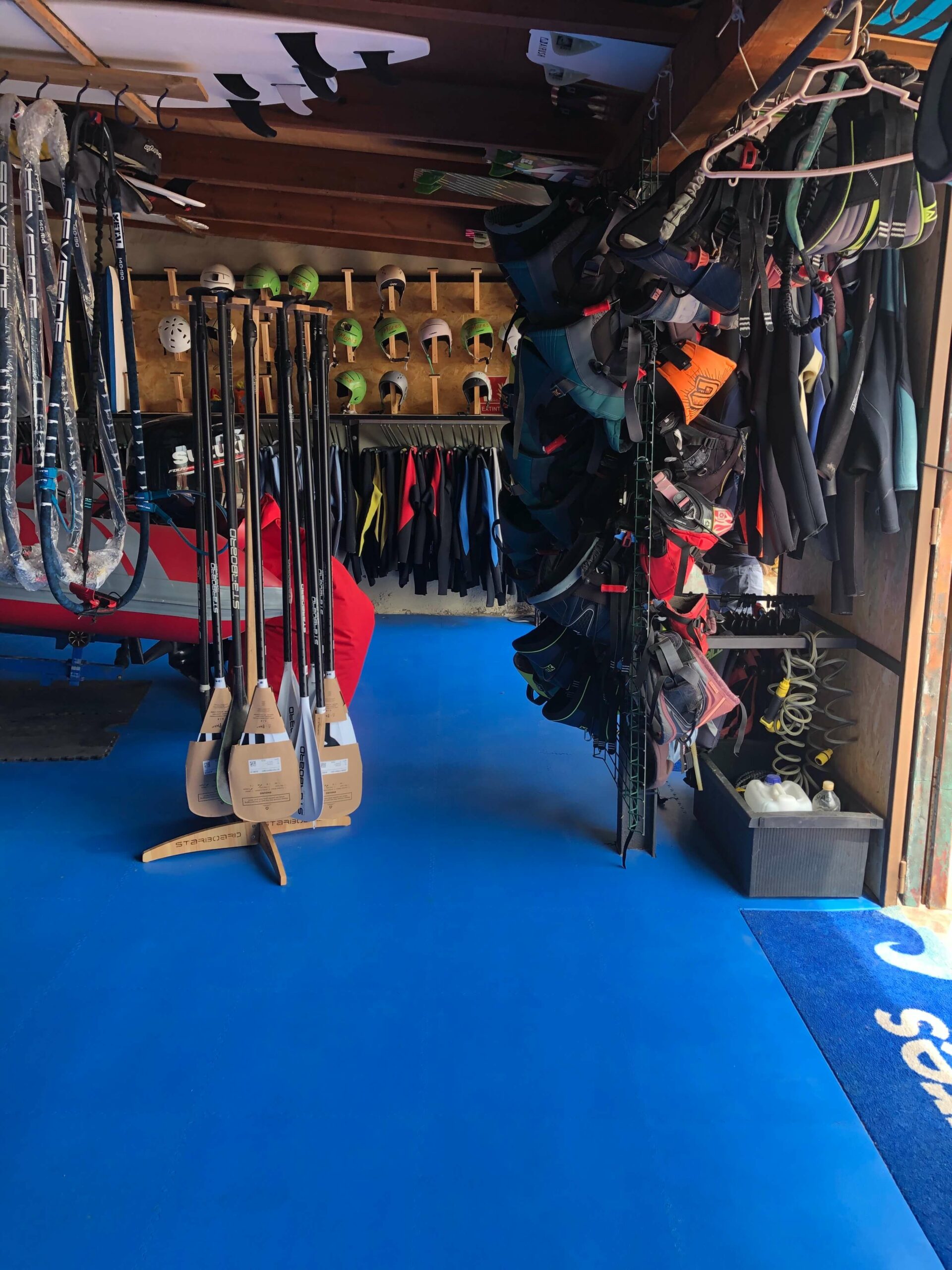 In einem Surfverleih ist der Boden oft nass und durch feinen Sand einer hohen schmirgelnden Belastung ausgesetzt. Um den Werkstattboden sanieren oder – wie hier – einen gewerblichen Verleihbereich ausstatten zu können, wurde ein System gesucht, das absolut rutschhemmend ist, keine Feuchtigkeit aufsaugt und sich in kürzester Zeit ohne Betriebsunterbrechung verlegen lässt.