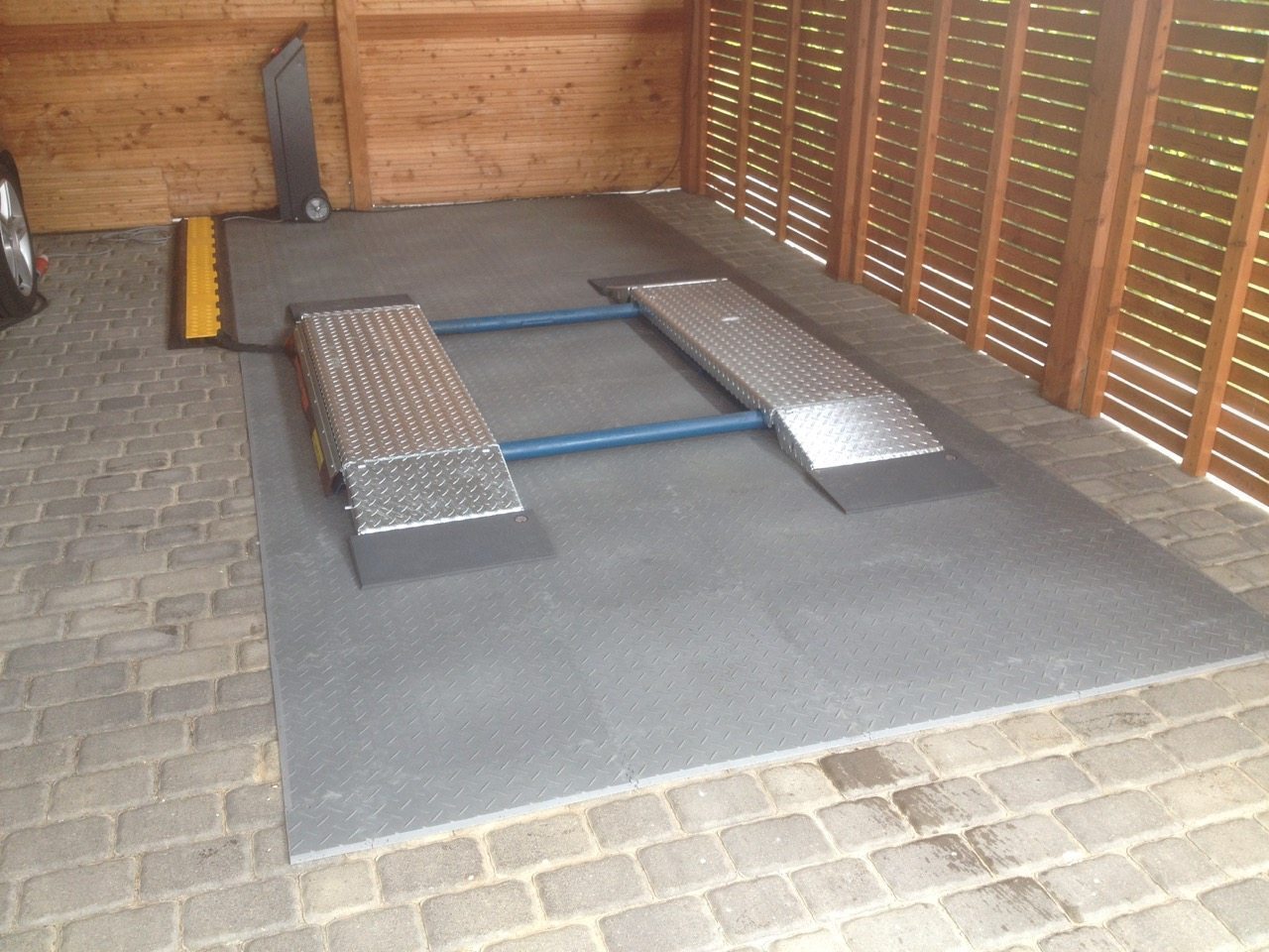 In der Automobilreparatur ist der Kontakt mit Chemikalien unvermeidlich. Die Fortelock Industry Fliesen (Modell 2010) wurden speziell für solche Umgebungen entwickelt:
