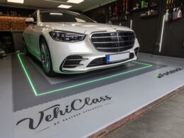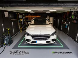 In der tschechischen Detailingwerkstatt Vehiclass, wo Fahrzeuge bis ins kleinste Detail gereinigt und gepflegt werden, fiel die Wahl auf den robusten Fortelock Industry Ultra PVC Bodenbelag. Der Kunde nutzte zusätzlich den professionellen Verlegeservice von Fortelock – das Ergebnis: ein langlebiger, pflegeleichter und optisch überzeugender Werkstattboden, der den hohen Ansprüchen im täglichen Betrieb standhält. Verlegt wurden 40 m² Fortelock Bodenfliesen im modernen Skin-Design in den Farbtönen Graphite und Grey. Die speziell beschichteten Fliesen bieten maximale Beständigkeit gegenüber Chemikalien, Ölen und Abrieb – ideal für die Anforderungen einer Detailingwerkstatt, in der Präzision, Sauberkeit und Belastbarkeit gefragt sind. Kundenstimme: